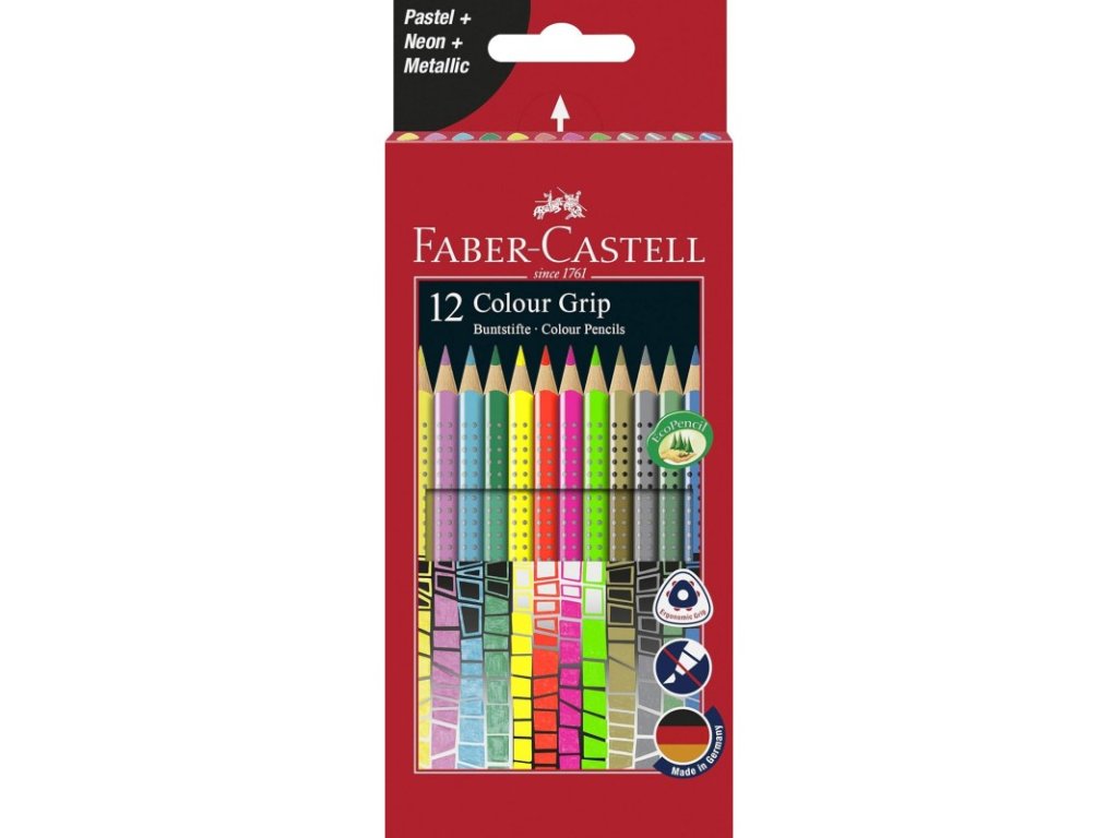 Faber-Castell, 3 hranné pastelky, sada 12 ks, grip zóna , PASTEL + NEON + METALLIC