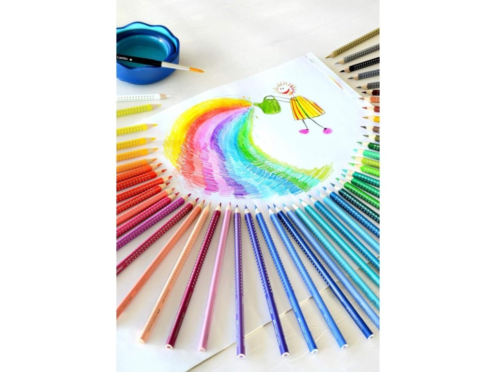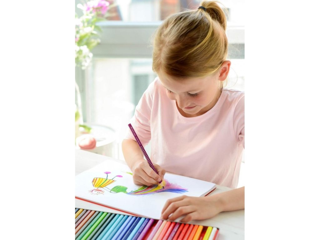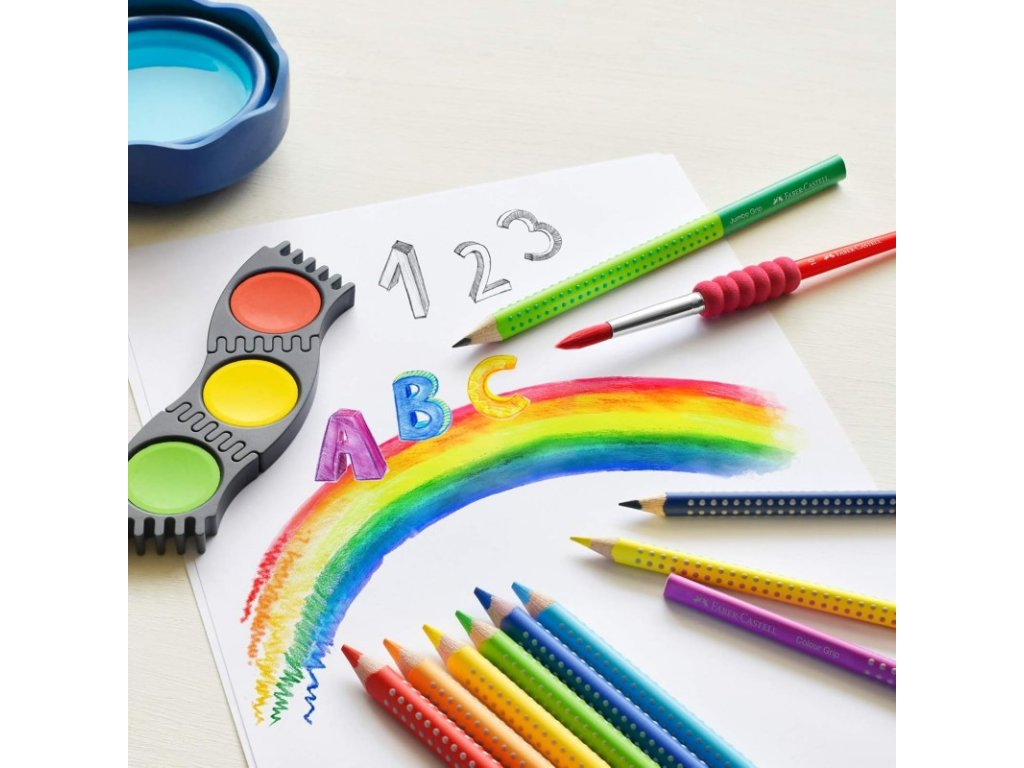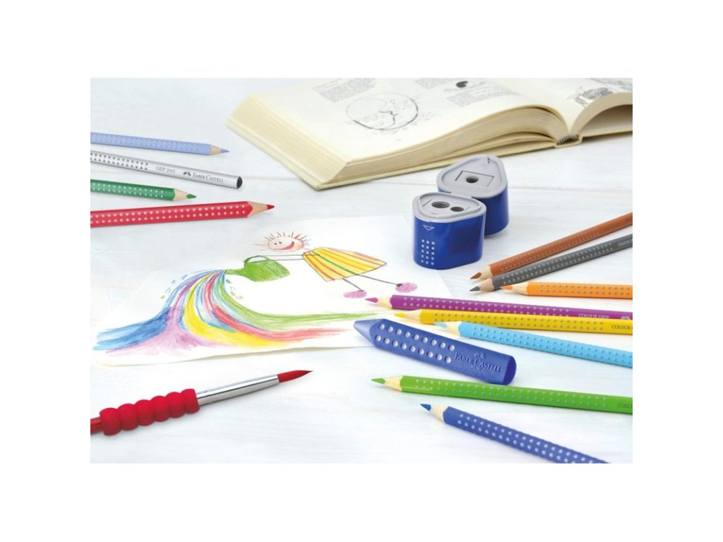 - Pro starší děti jsou vhodné pastelky Colour Grip s ergonomickým trojhranným tvarem a patentovanou Grip zónou s malými masážními a protiskluzovými body.
