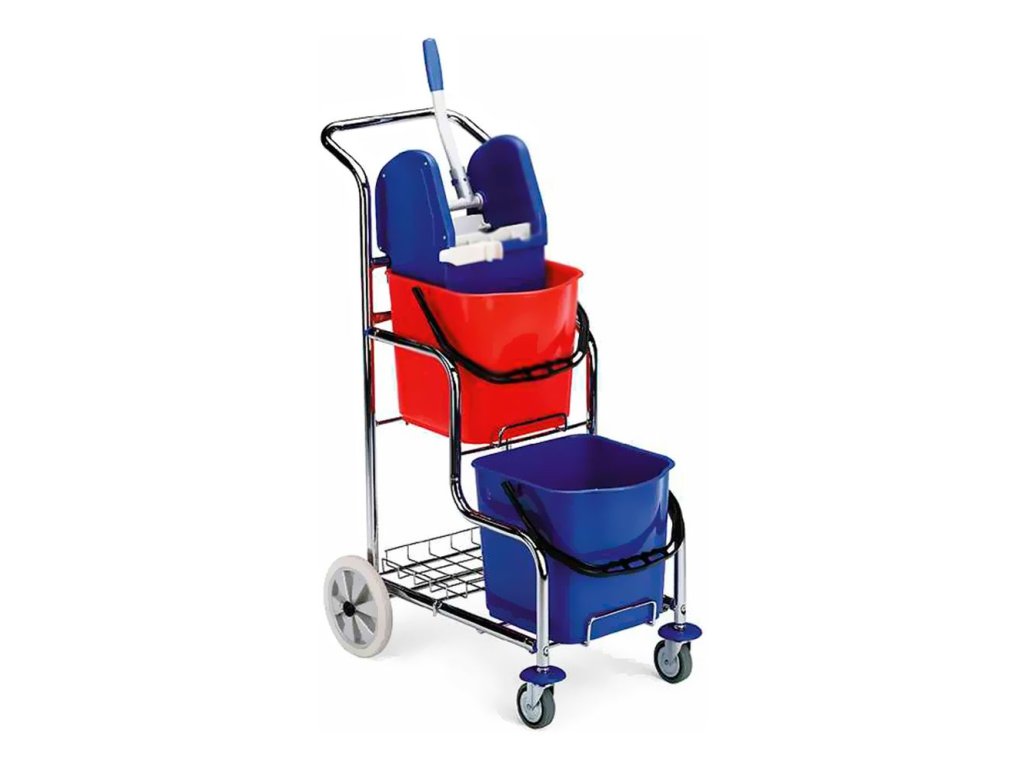 Filmop SCALA 30 l je robustní dvoukbelíkový úklidový vozík s chromovanou konstrukcí, navržený pro efektivní a ergonomické mytí podlah na větších plochách. Díky chytrému rozložení hmotnosti, velkým kolečkům a praktickému příslušenství nabízí vozík vysoký komfort při každodenním použití.