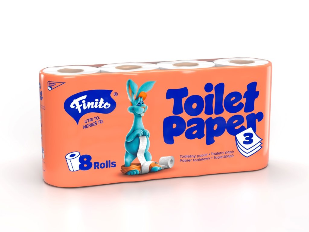 FINITO, jemný toaletní papír, 3vrstvy, 160 útržků, 8 ks, 18m
