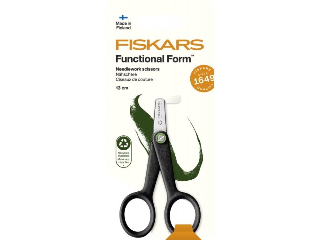 - Nůžky vyšívací Fiskars Functional Form ReNew jsou vyrobeny z recyklovaných materiálů (minimálně 70 %) a poskytují maximální pohodlí a střižný výkon