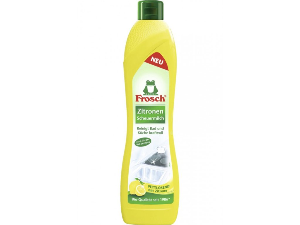 - Čistící a odmašťující účinek výrobku Frosch citrus zaručuje jemně mletý přírodní vápenec a výtažek z kůry citrónů.