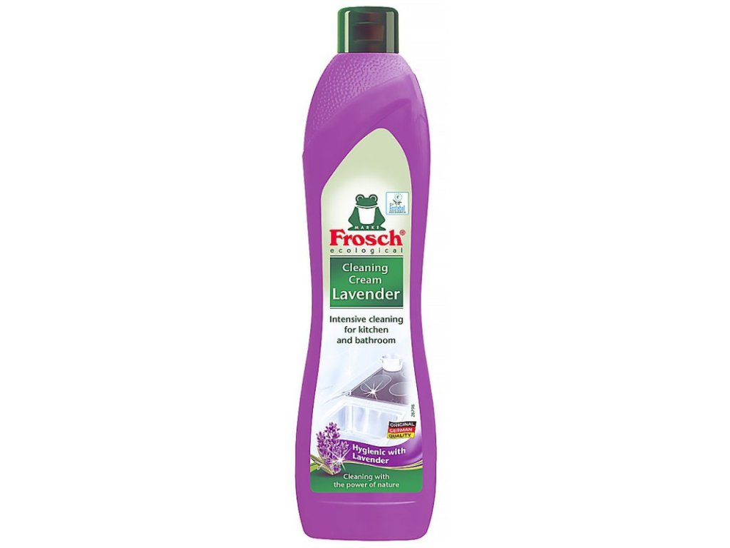 - Čistící krém Frosch s vůní levandule funguje na bázi mramorové moučky a zanechává příjemnou levandulovou vůni. Nepoužívejte na umělohmotné povrchy, např. akryláty nebo plexisklo.