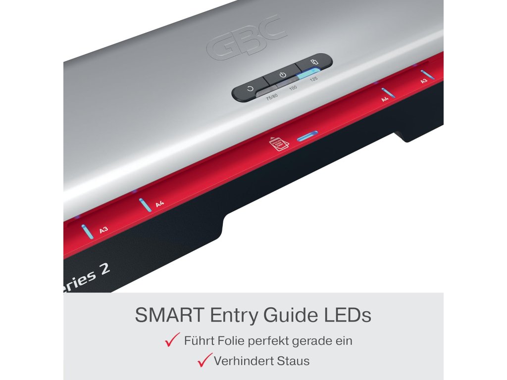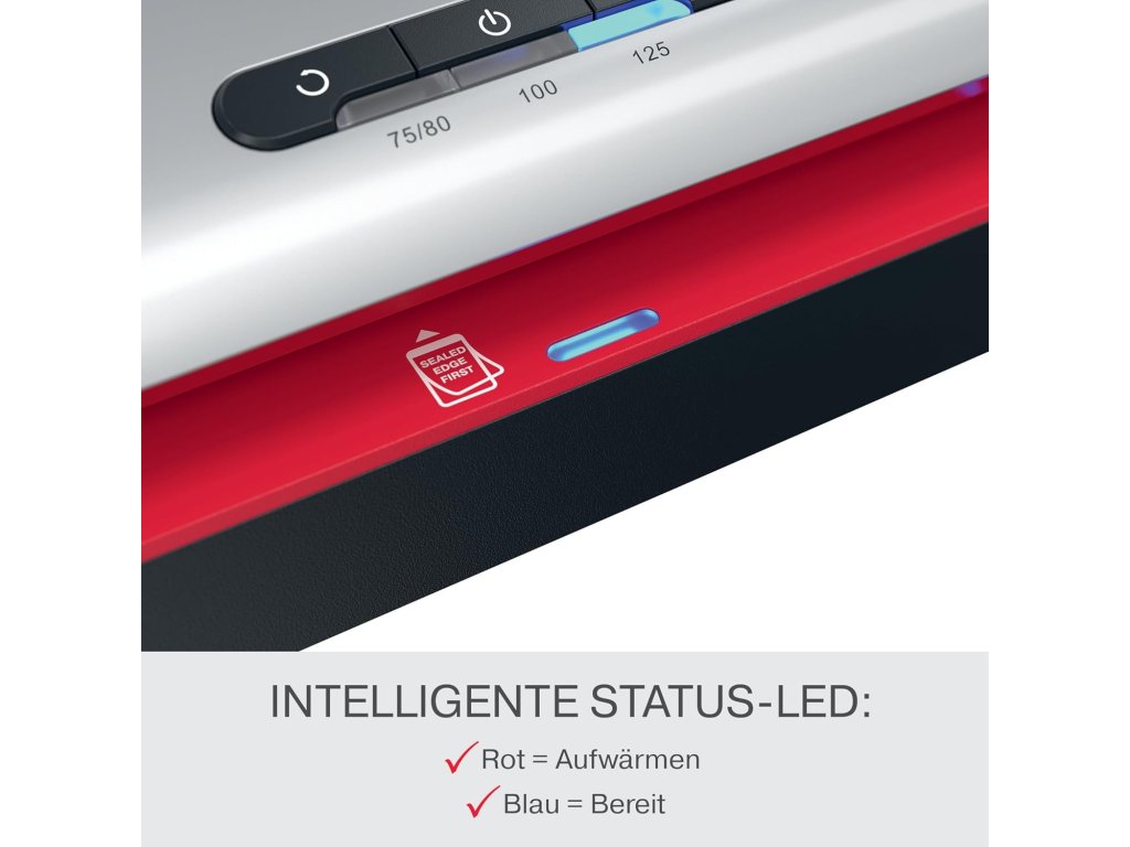 - stavová LED dioda SMART: během zahřívání svítí červeně a zmodrá se zvukovým signálem, když je laminátor připraven k použití