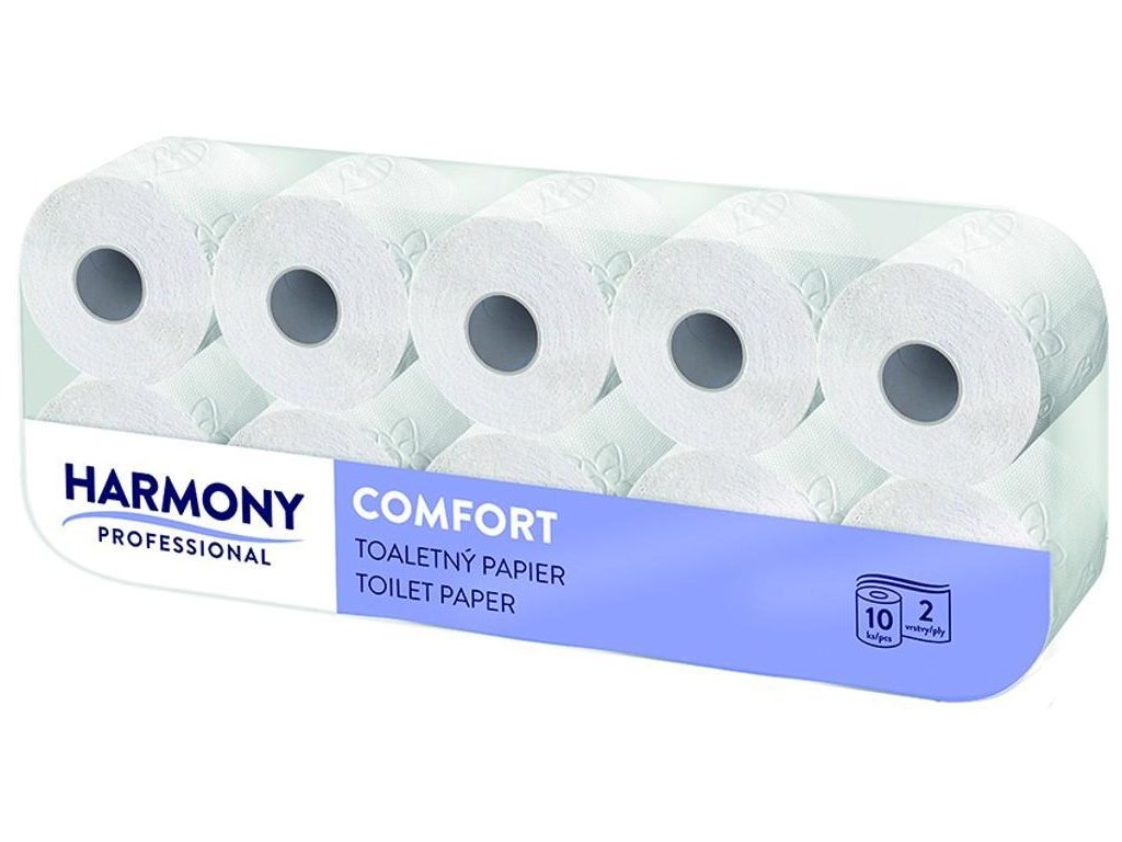 Toaletní papír Harmony Comfort je určen pro standardní držáky na konvenční role. Díky dvouvrstvé konstrukci poskytuje dobrou pevnost i jemnost při každodenním používání.