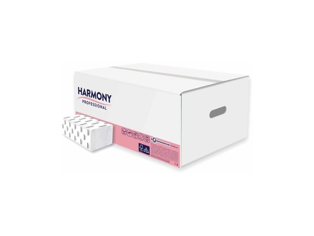 - Dvouvrstvé papírové ručníky Harmony, skládané, bílé ze 100% celulózy ideální poměr mezi cenou a kvalitou.
