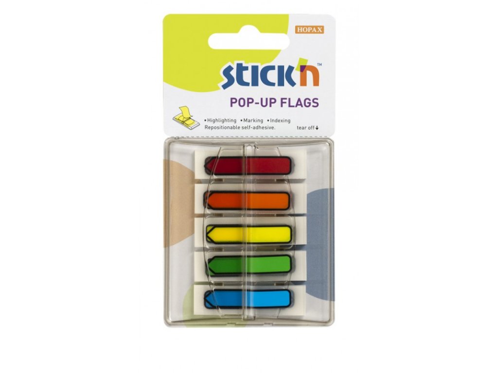 Hopax, Samolepící záložky popisovatelné - šipky 45x12 mm, Pop-Up Flags 5x30 lístků