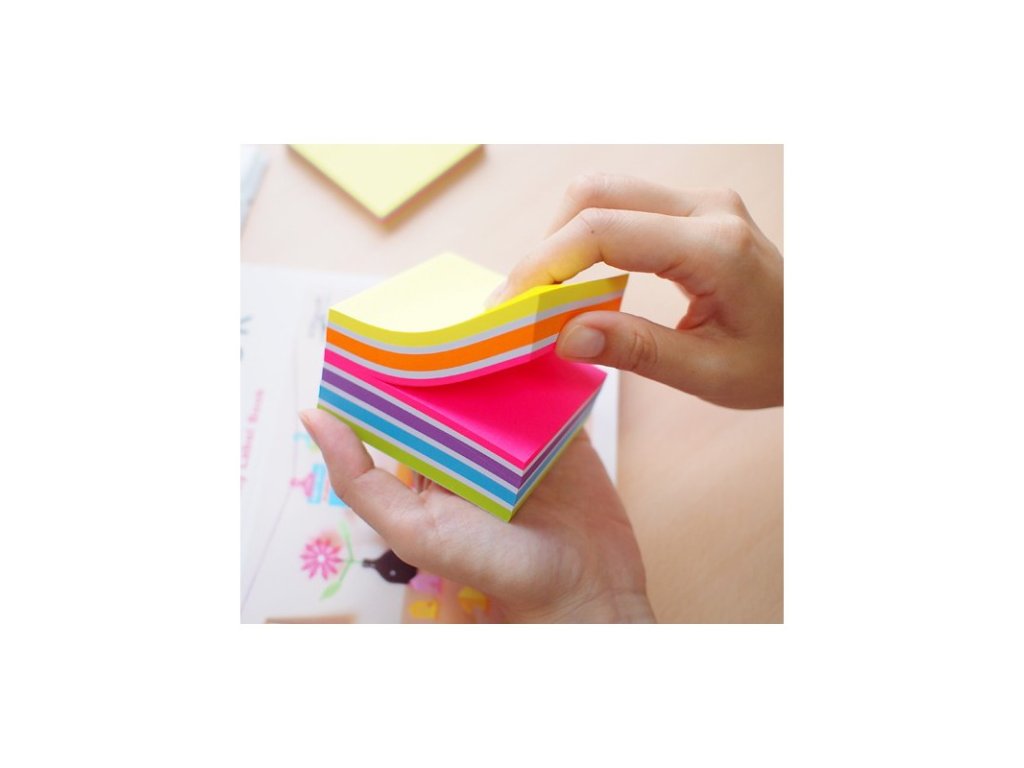- Samolepící bločky ve tvaru kostky 76 x 76 mm. 8 vrstev po 50 lístcích v osvěžujících odstínech neonových a pastelových barev.