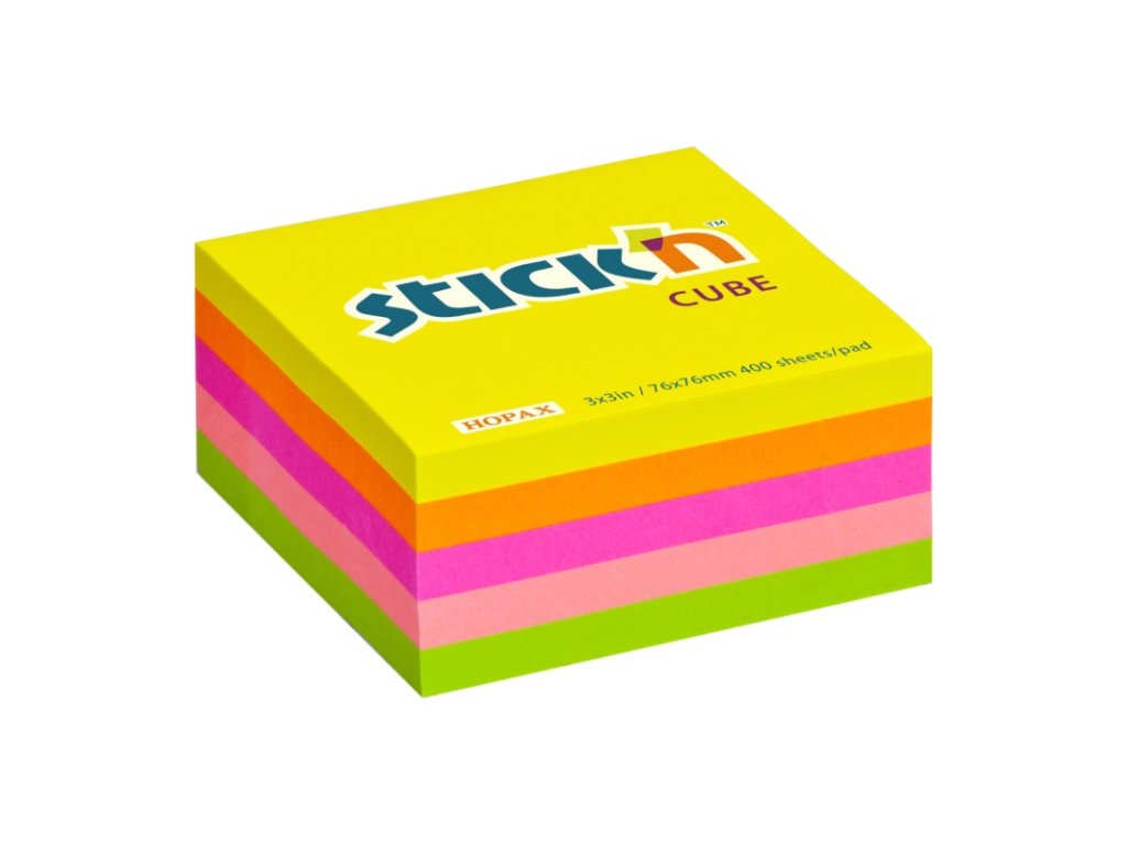 - 76x76mm/3”x3”, 400sheets/cube, Neon mixed