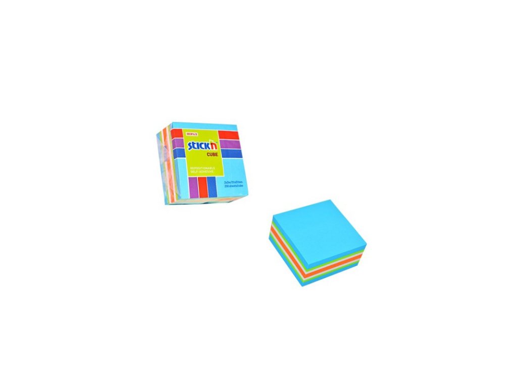 - Samolepící bločky ve tvaru kostky 51 x 51 mm. 5 vrstev po 50 lístcích v osvěžujících odstínechneonových a pastelových barev.