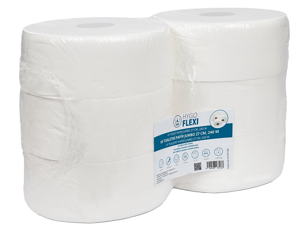 Hygo Jumbo 270, jemný toaletní papír, 2vrstvý bílý, balení 6 rolí, 240m, T1