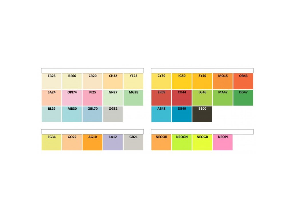 - Barvy jsou rozděleny na pastelové, intenzivní, trendové a neonové.