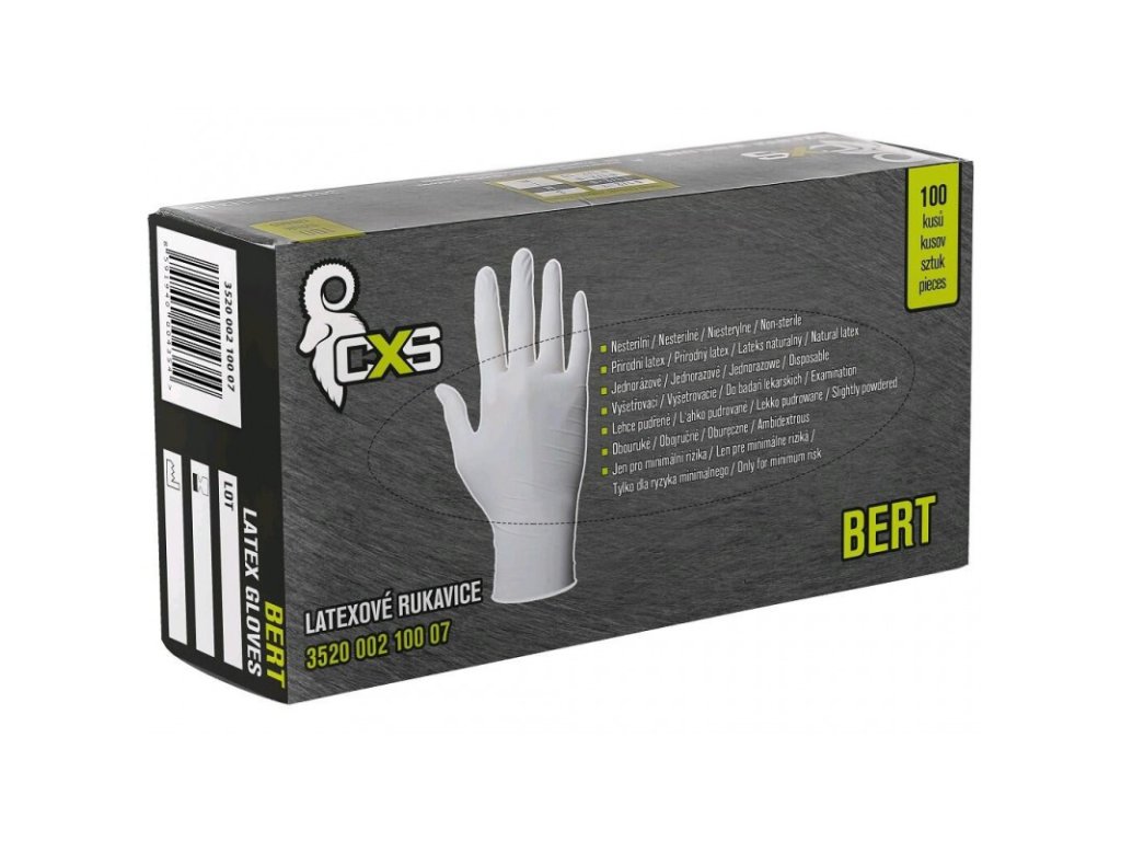 Jednorázové lehce pudřené latexové rukavice Bert - velikost S - 7
