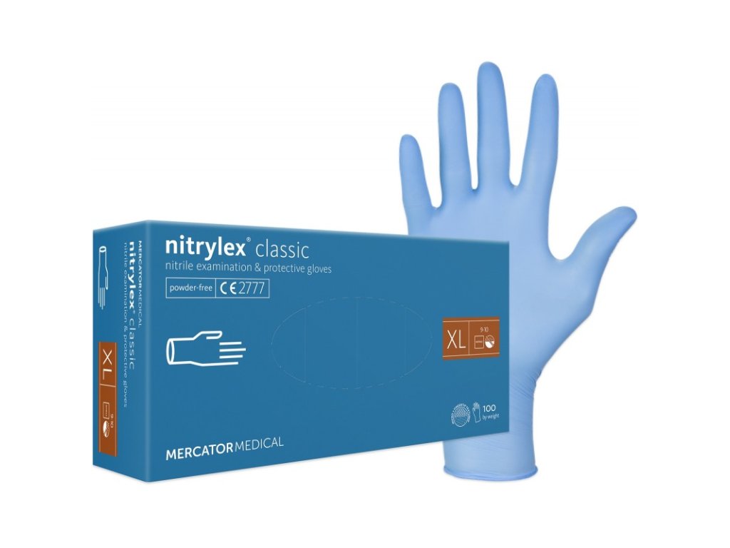 Vyšetřovací rukavice Nitrylex značky Mercator Medical jsou vhodné pro použití nejen ve zdravotnictví a ošetřovatelské péči, ale např. také v laboratorní praxi, kosmetických službách, komunitní a sociální péči, a díky atestu pro kontakt s potravinami také v gastro průmyslu. Jsou vyrobeny z pružného a odolného materiálu (nitrilu neboli nitril-butadien kaučuku) s polymerovou vrstvou, který zajišťuje nejen komfort při nošení, ale také účinnou ochranu proti baktériím, plísním a virům a také některým druhům chemikálií (OOP III. kategorie). Neobsahují proteiny přírodního kaučuku, proto jsou vhodné také pro osoby trpící alergií na latex a alergiky typu I.