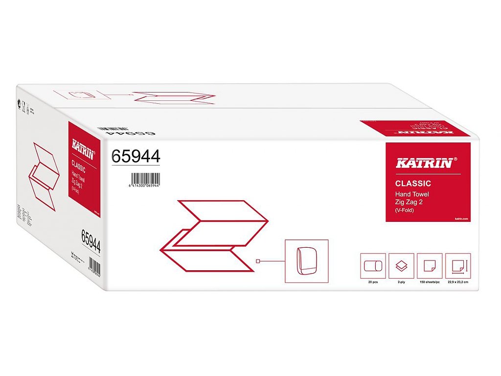 Katrin 65944, Papírové ručníky ZZ, 2 vrstvé recykl, 20x150 útržků, bílé