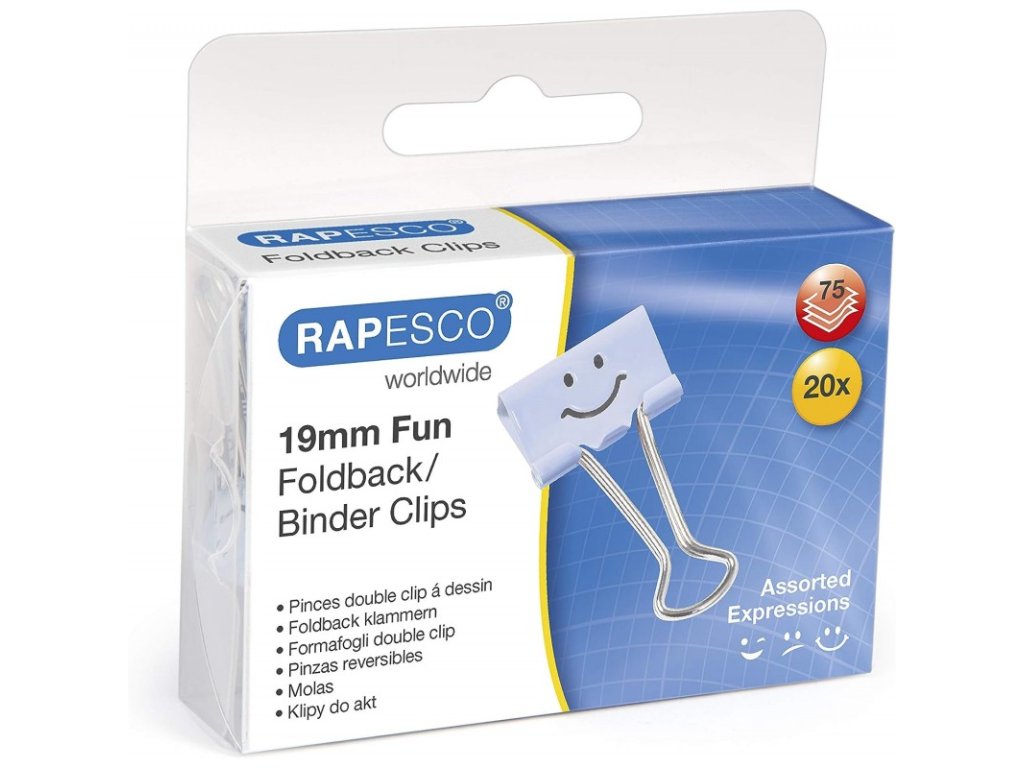 Klipy na papír Rapesco Emoji, binder klips 19 mm, modré, 20 ks