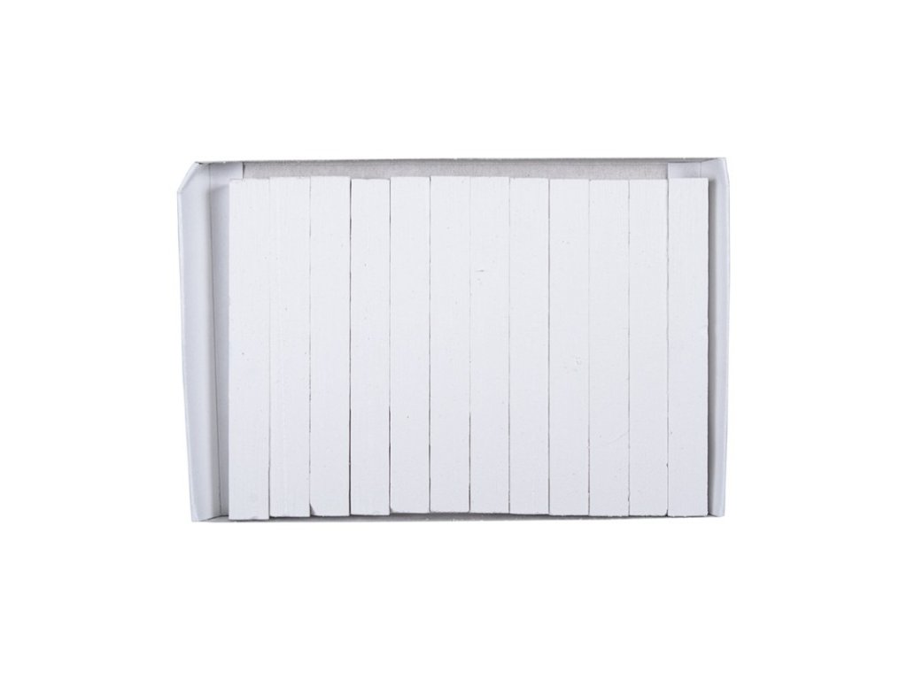 - Sada 12 kusů školních bílých čtyřhranných kříd o rozměrech 12x12x100 mm, které jsou určeny pro psaní na školní tabule, vložených do krabičky s potištěnou manžetou a eurozávěsem.