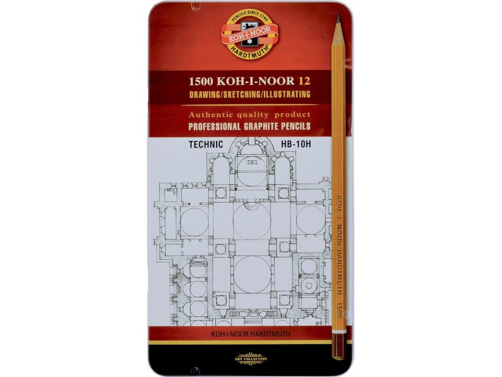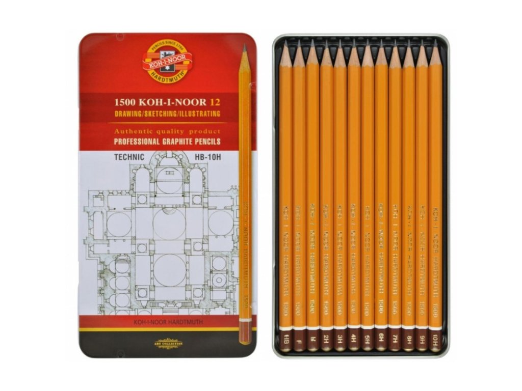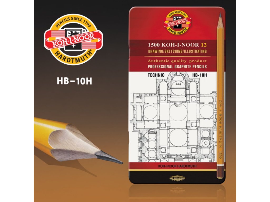 KOH-I-NOOR 1502, souprava tužek grafitových 12 ks, TECHNIC, tvrdosti HB – 10H
