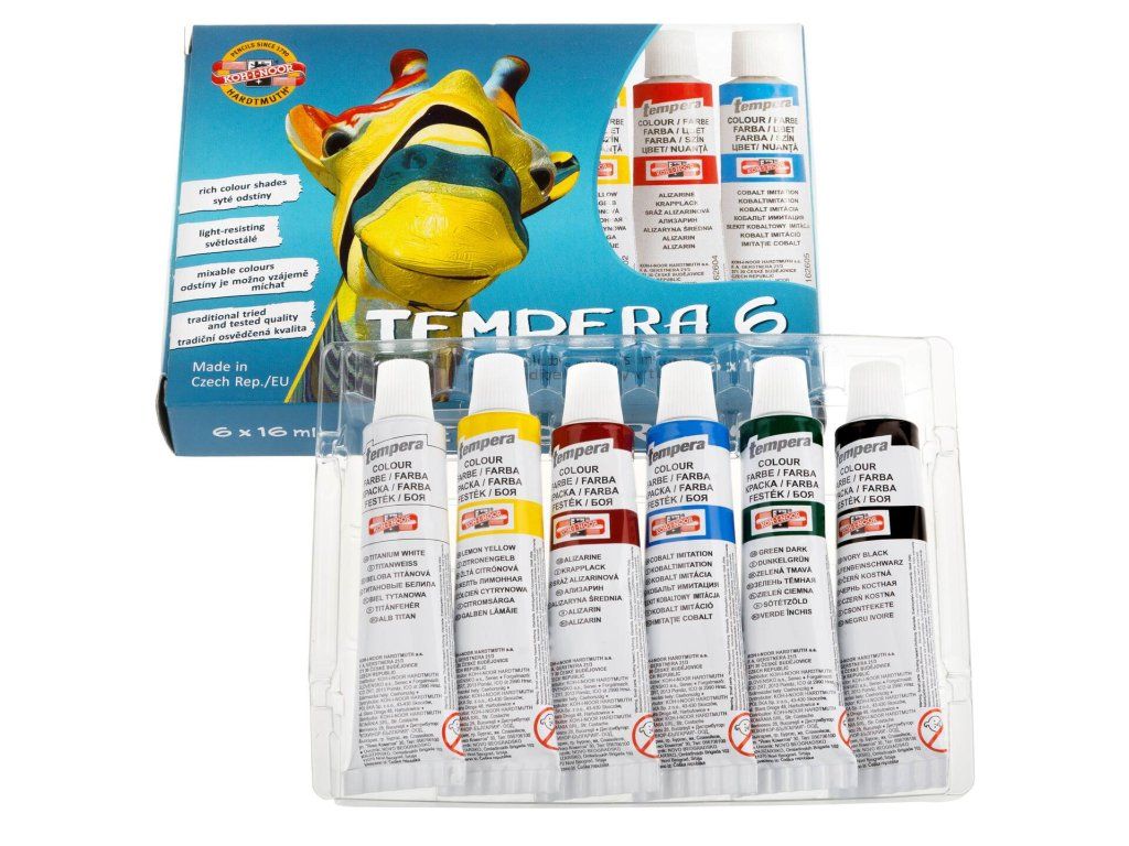 KOH-I-NOOR 1625, sada 6ks temperových barev, 16 ml, motiv žirafa