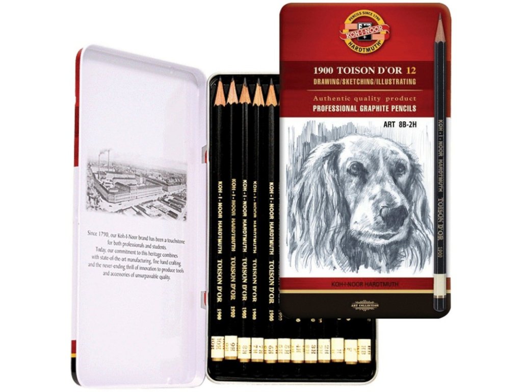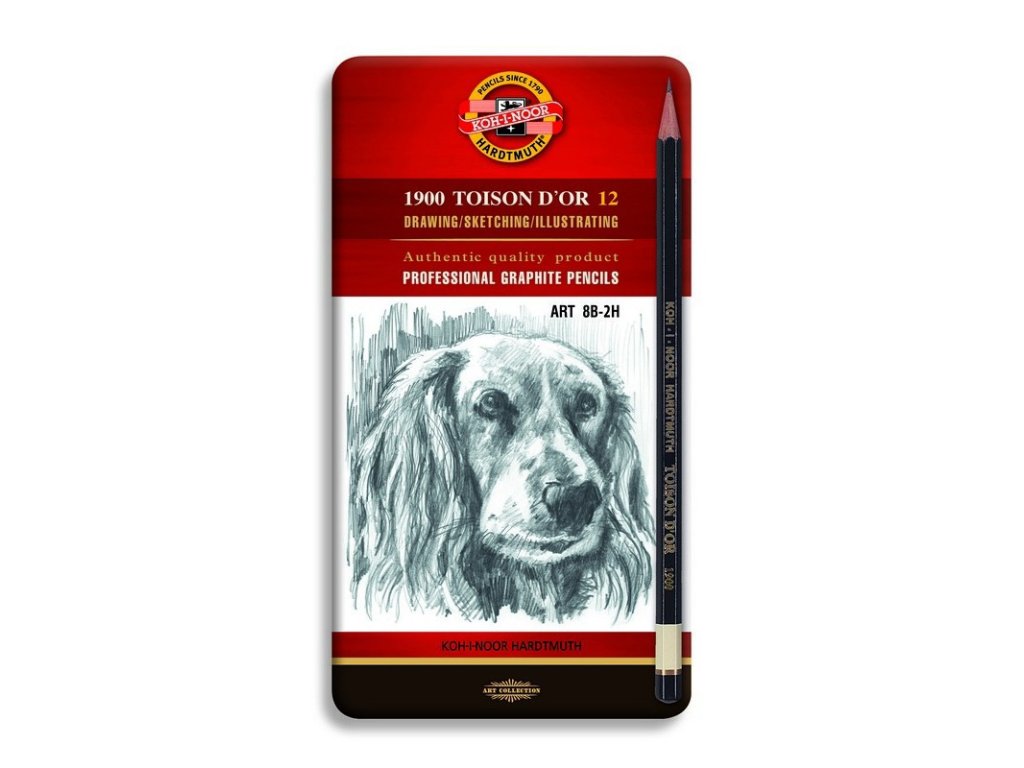 KOH-I-NOOR 1912, souprava měkkých grafitových tužek TOISON D'OR, 12 ks v kovové krabičce