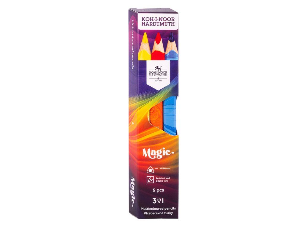 KOH-I-NOOR 3408 MAGIC trojhranné pastelky 6 ks, multibarevné jádro, FSC 100%, kartonová krabička
