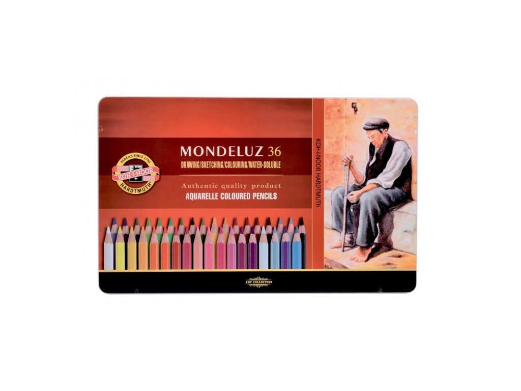 KOH-I-NOOR 3725, souprava pastelek akvarelových Mondeluz, 36 barev, kovová krabička