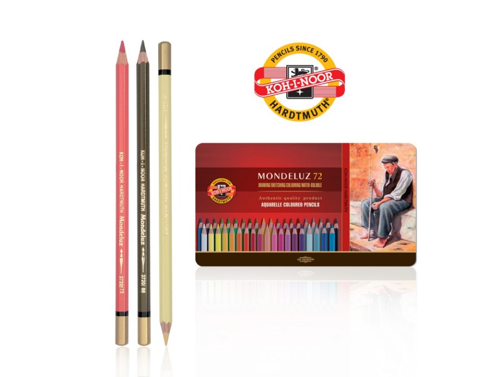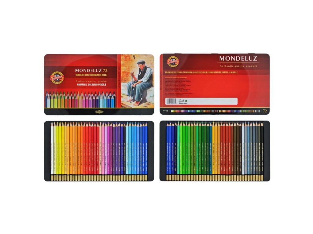 KOH-I-NOOR 3727, souprava pastelek akvarelových Mondeluz, 72 barev, kovová kazeta