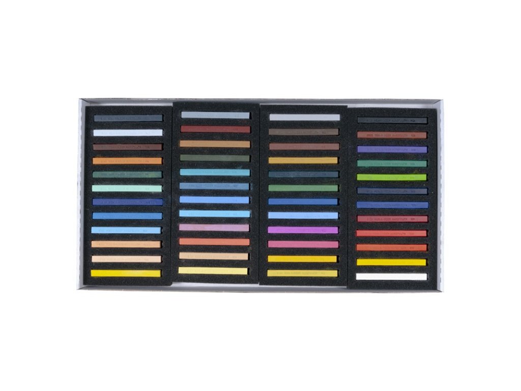 - 48 ks souprava uměleckých tvrdých hranatých pastelů o rozměru 7 x 7 x 75 mm zabalené v kartonové krabičce.