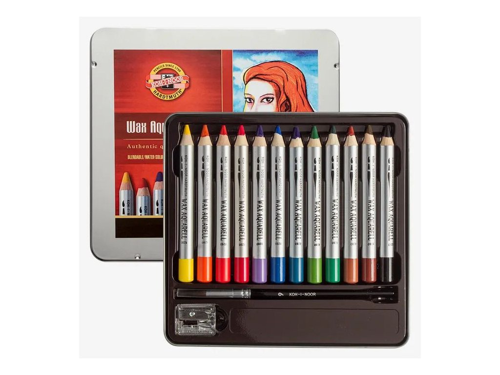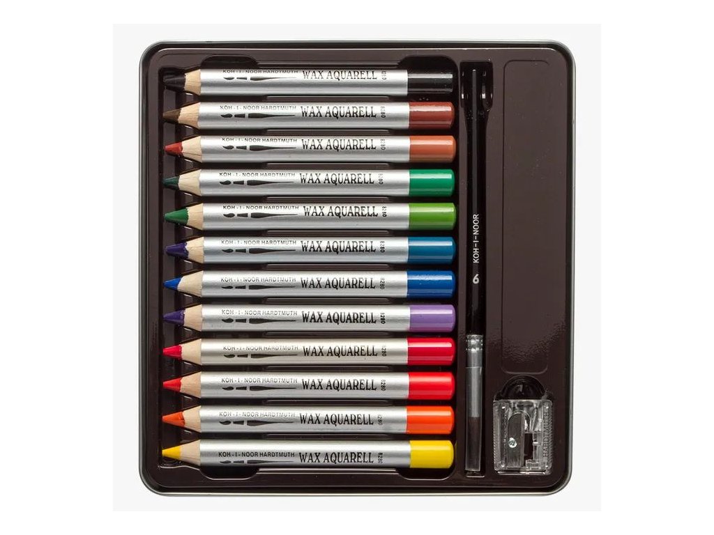 KOH-I-NOOR 8282 sada uměleckých voskových pastel akvarelových, kovová krabička, 12 barev