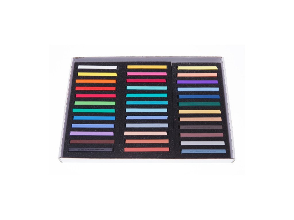 - Souprava 36 ks prašných uměleckých pastelů s pevnější strukturou, čtvercového profilu 7 x 7 mm a délky 75 mm.