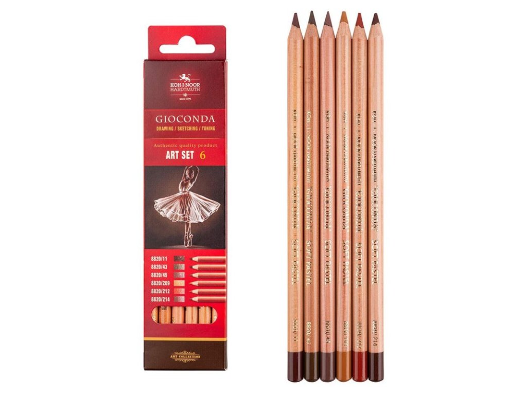 KOH-I-NOOR 8826, sada prašných uměleckých kříd v tužce, 6 barev, barevná řada hnědá