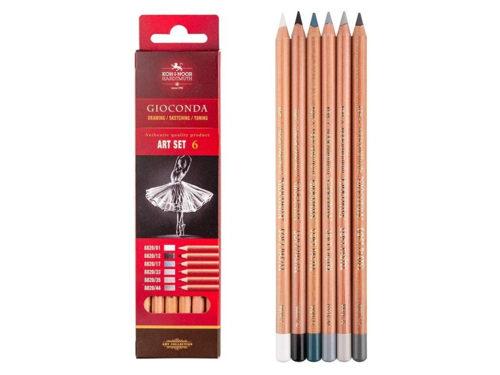 KOH-I-NOOR 8826, sada prašných uměleckých kříd v tužce, 6 barev, šedá řada