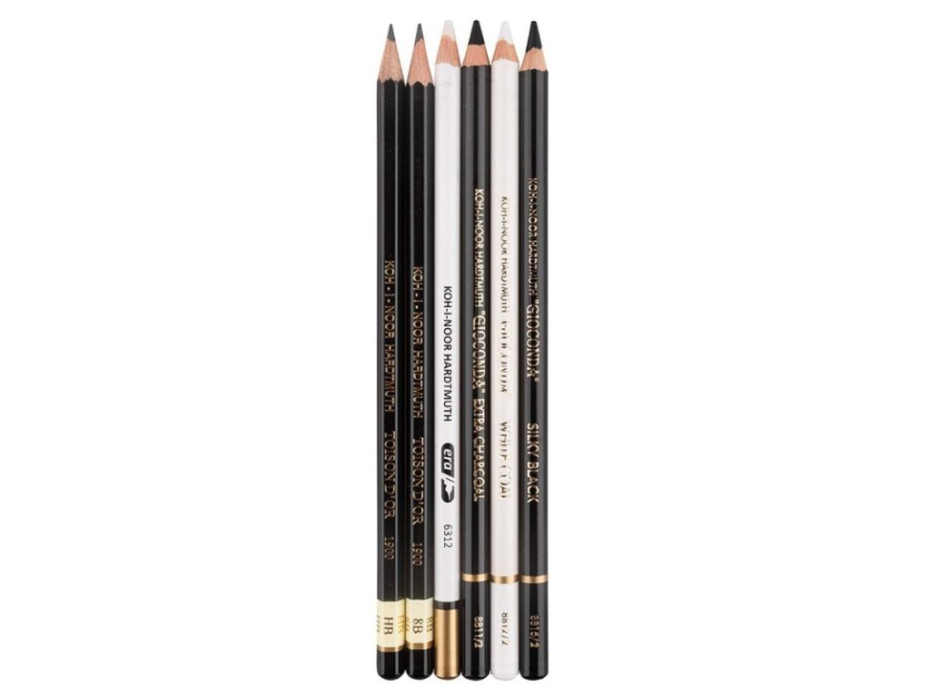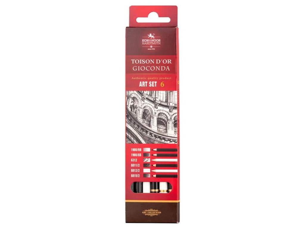 - Tato sada šesti uměleckých tužek obsahuje dvě grafitové tužky KOH-I-NOOR HARDTMUTH 1900 v gradaci HB a nejměkčí gradaci 8B.
