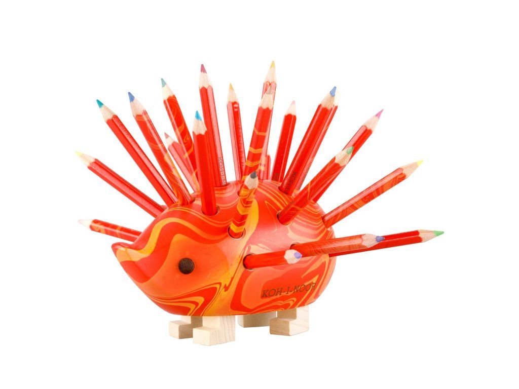 KOH-I-NOOR 9960M dřevěný stojánek ježek malý červený MAGIC s pastelkami 24 ks