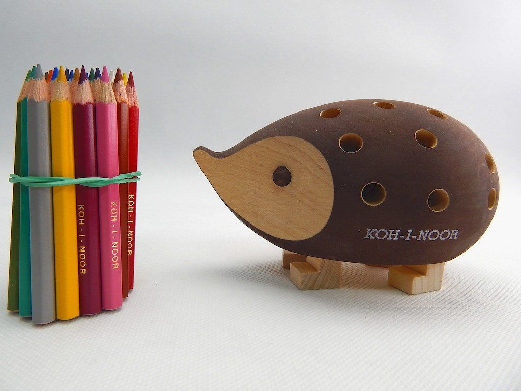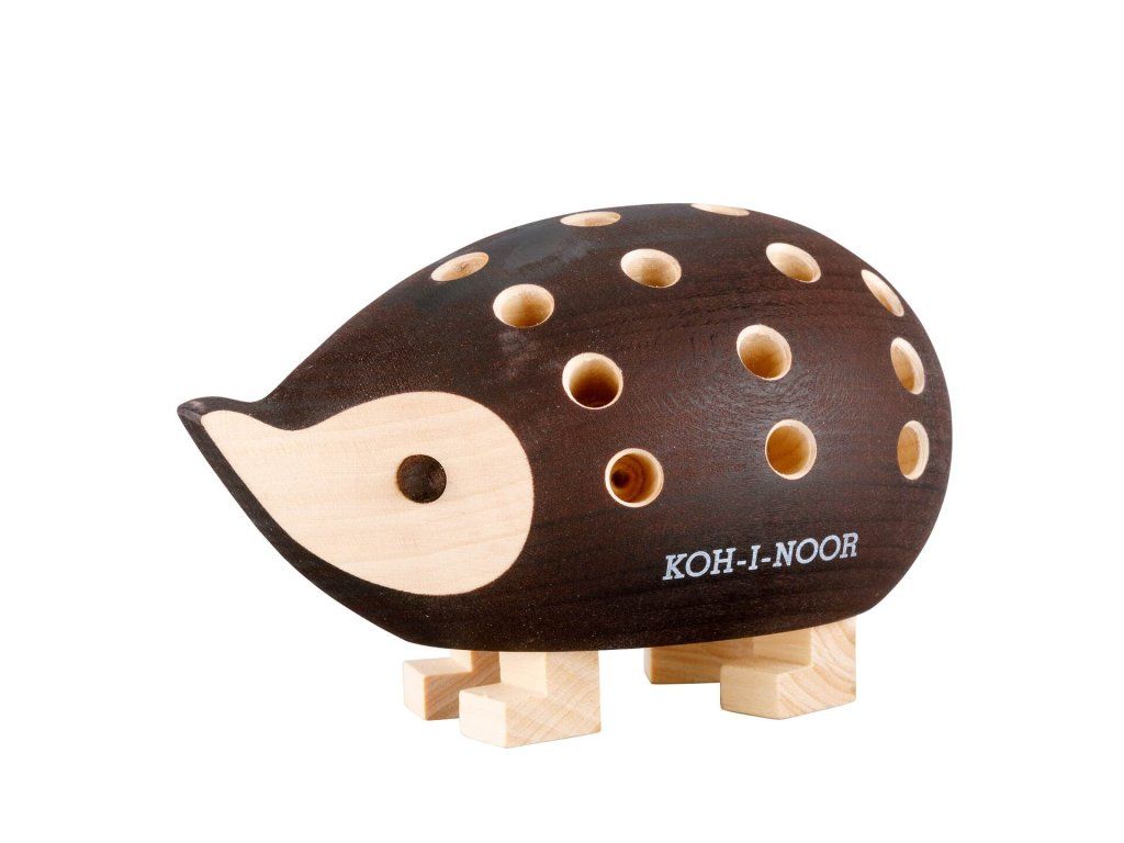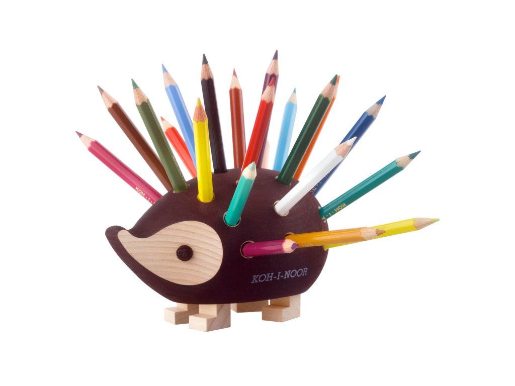KOH-I-NOOR 9960M dřevěný stojánek ježek malý hnědý s pastelkami 24 ks