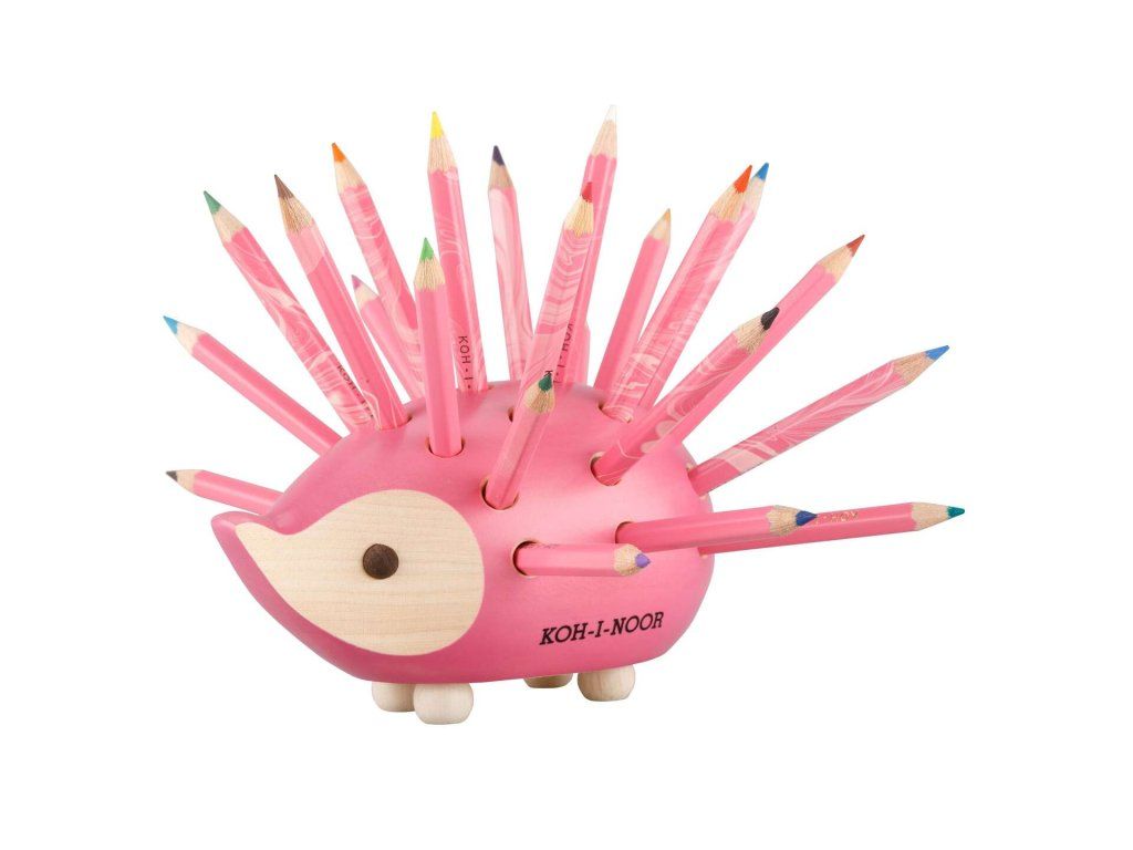 KOH-I-NOOR 9960M dřevěný stojánek ježek malý růžový s pastelkami 24 ks