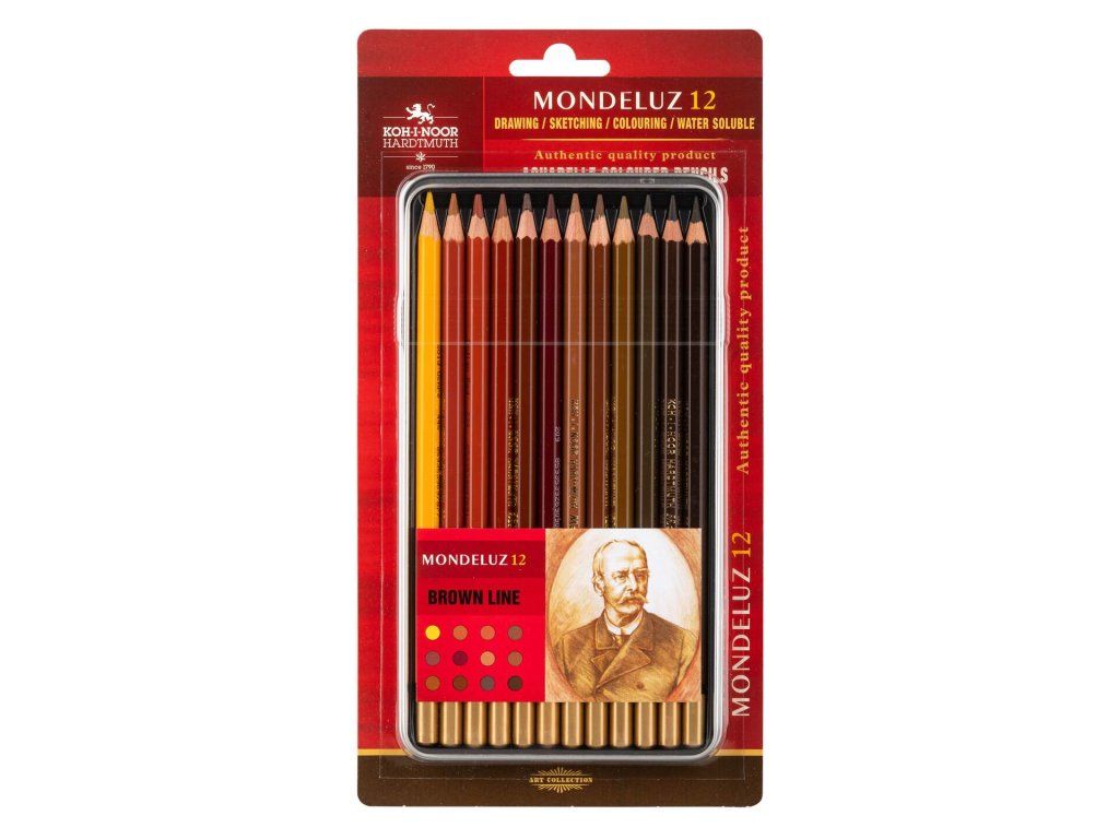 KOH-I-NOOR Mondeluz 3722 akvarelové pastelky 12 ks hnědá řada, kovová kazeta
