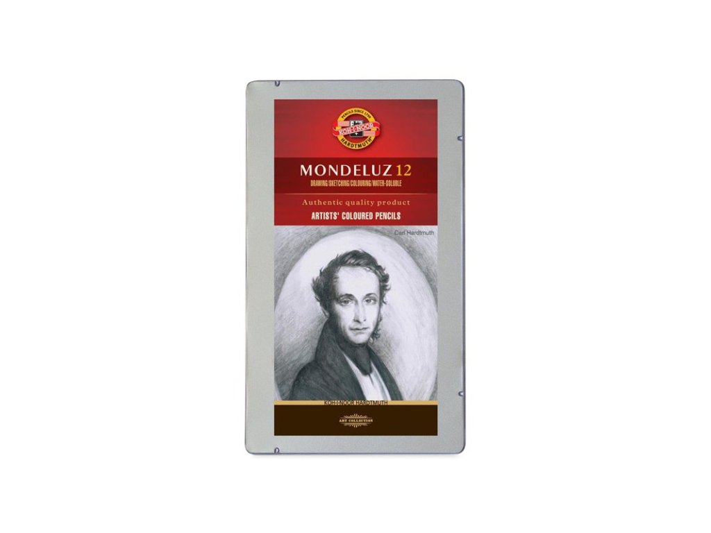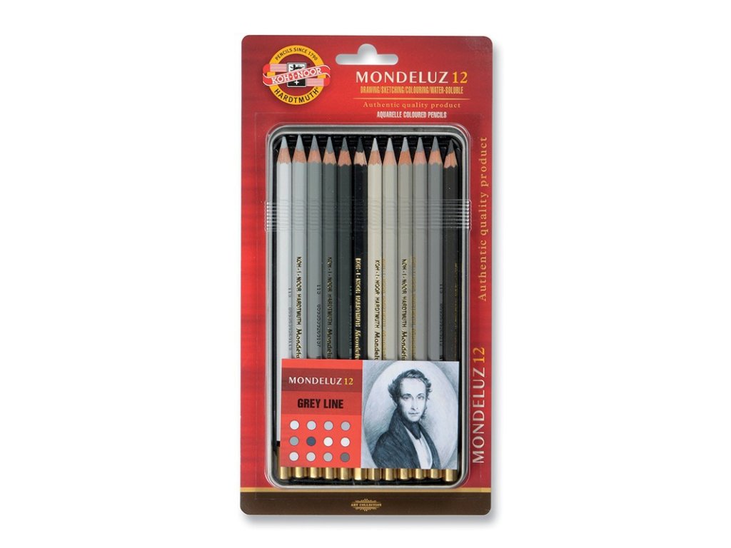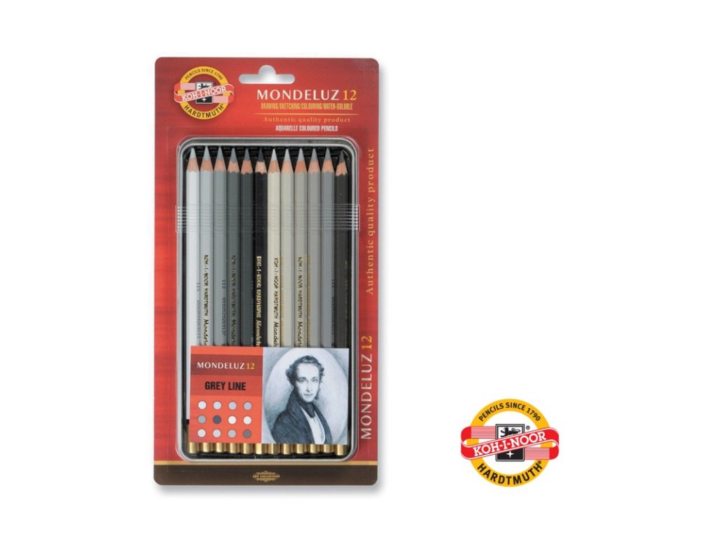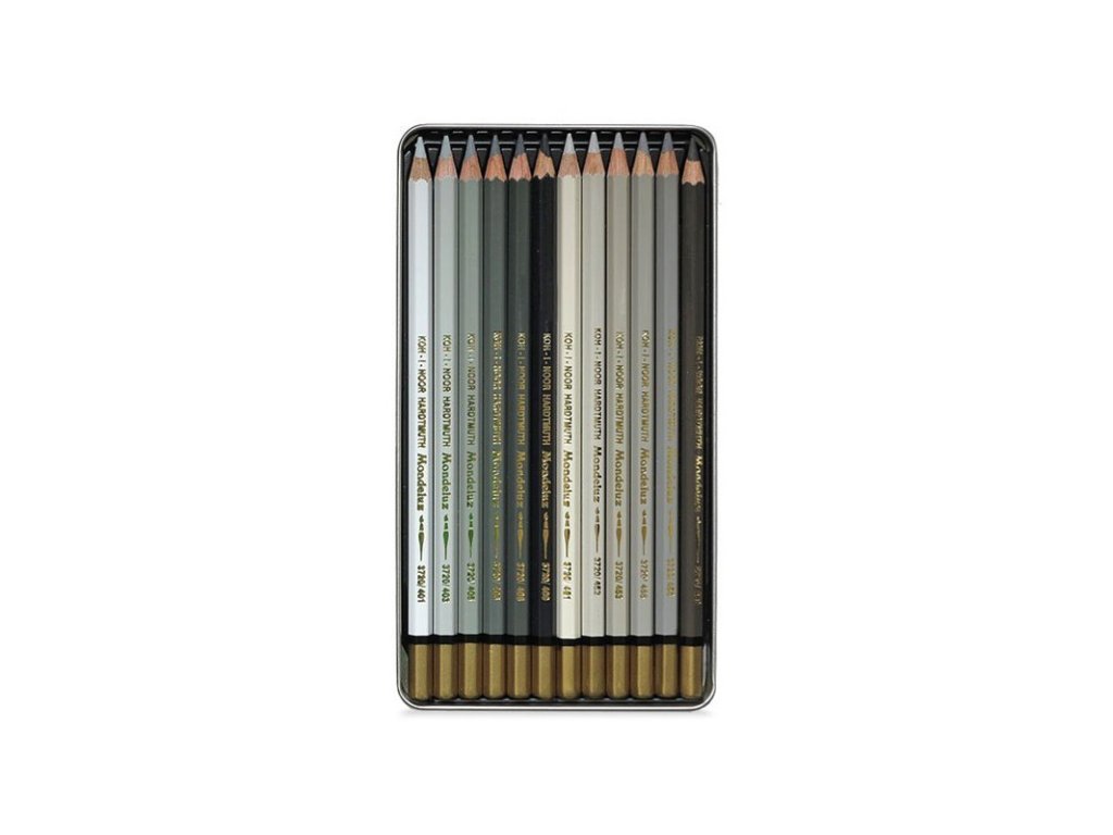 KOH-I-NOOR Mondeluz 3722, sada pastelek akvarelových 12 ks, šedá řada, kovová kazeta