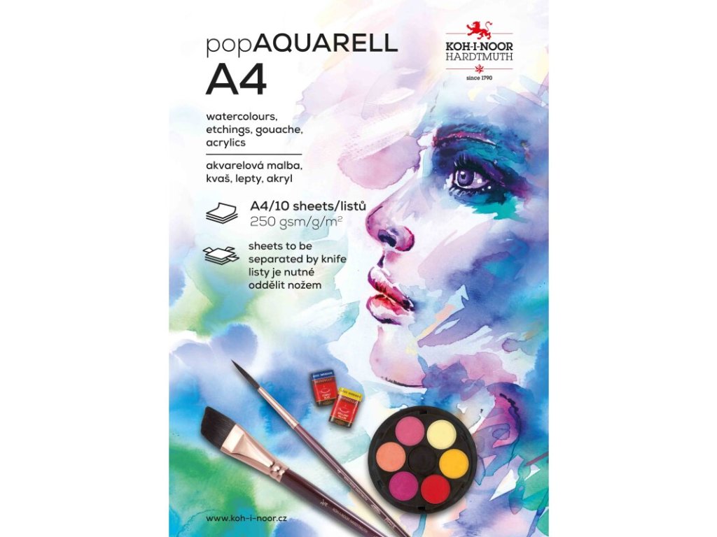 KOH-I-NOOR pop AQUARELL, 10 listý bílý blok formát A4, akvarele + tempery + tuš