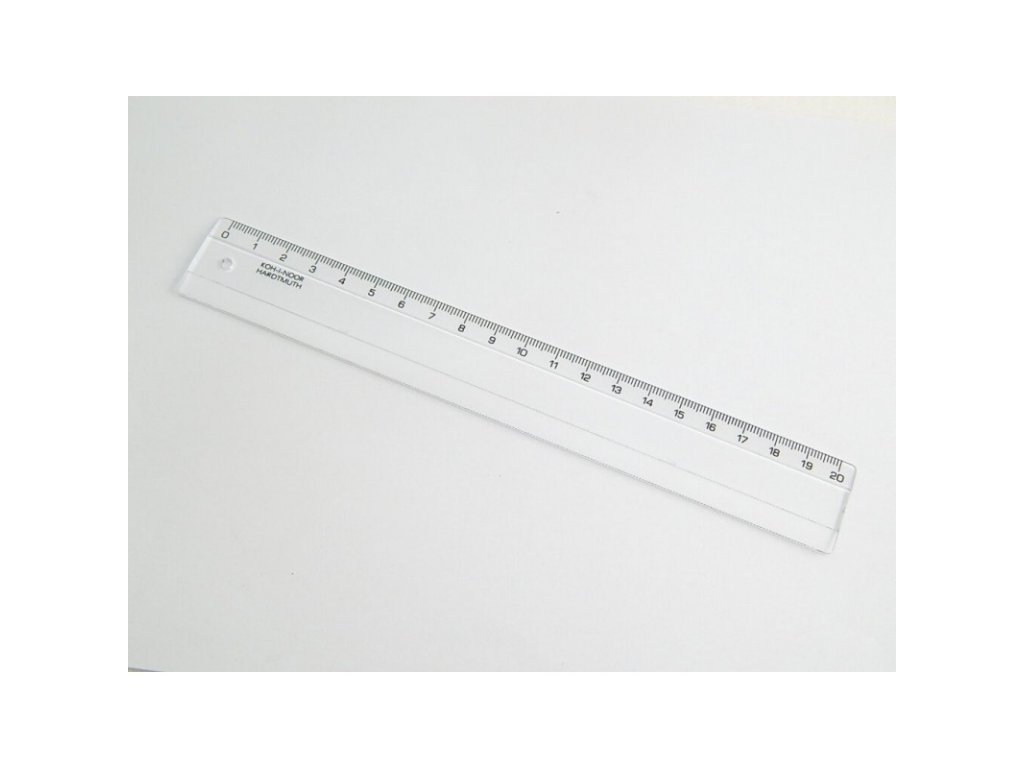 - Pravítko 20 cm vyrobené z čirého průhledného polystyrenu.
