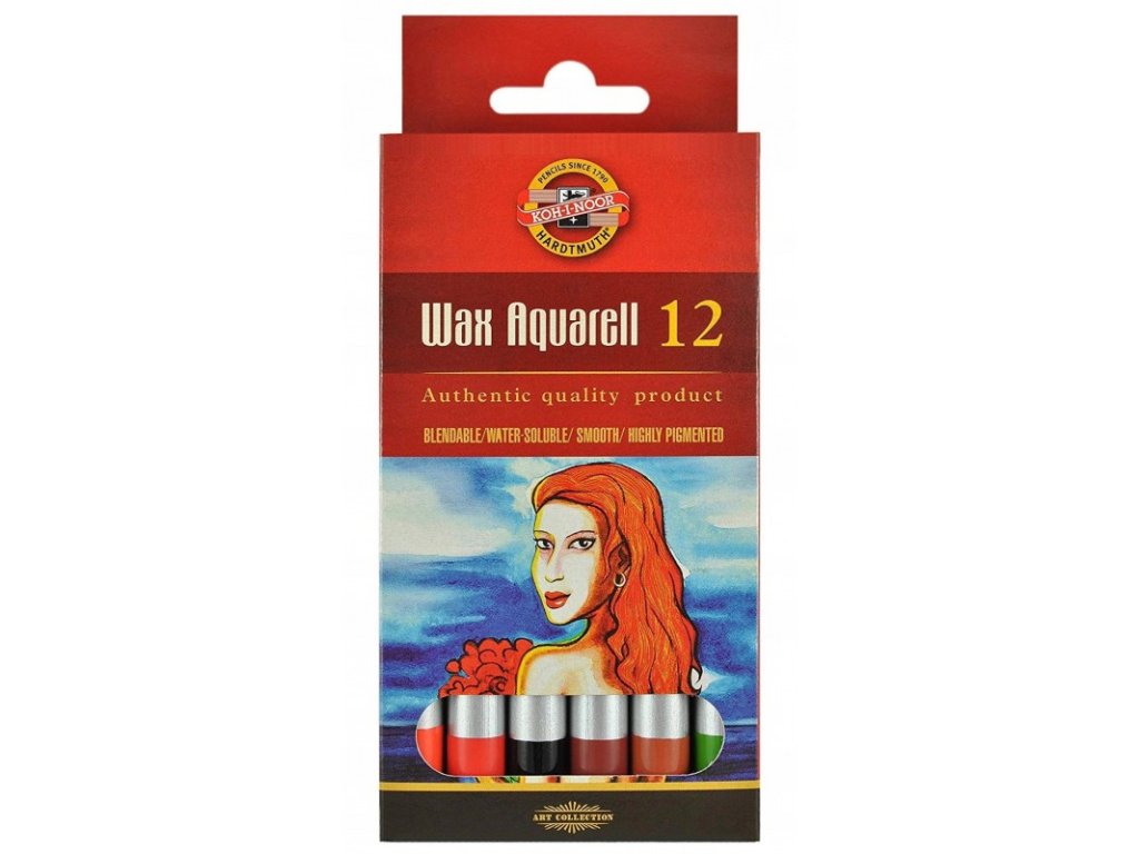 KOH-I-NOOR souprava uměleckých voskových pastel WAX akvarelových papírová krabička, 12 barev