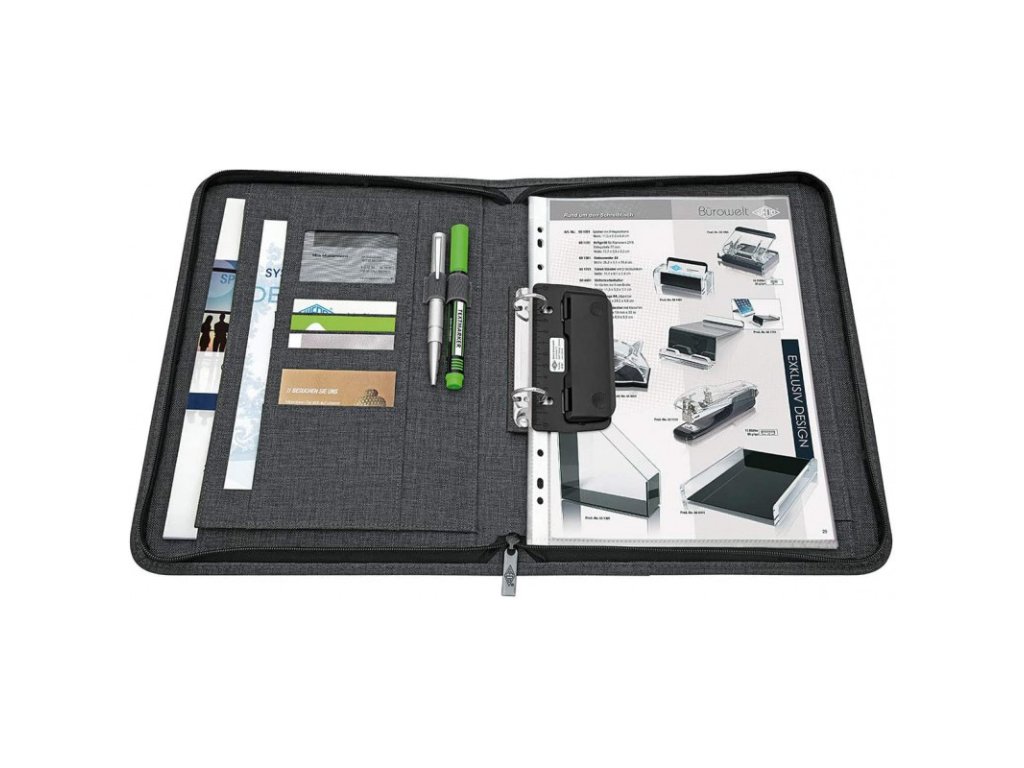 Konferenční desky A4 s kroužkovou mechanikou College, šedo černá