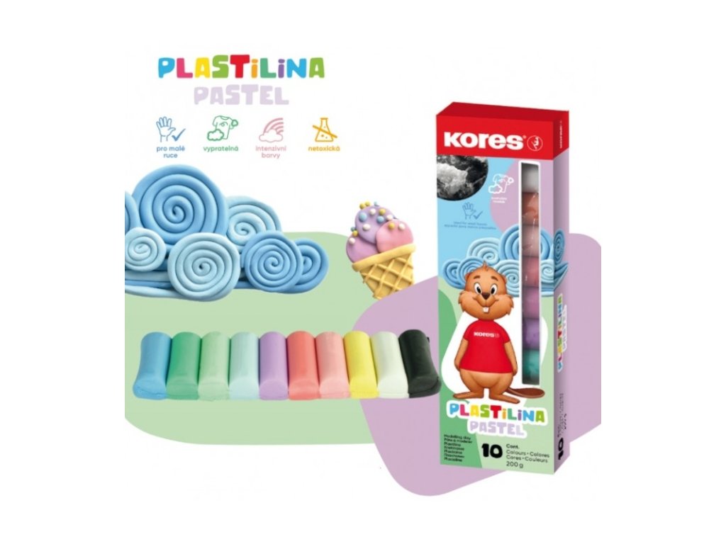 Kores, Plastelína Pastel (modelína), 10 pastelových barev po 20 g