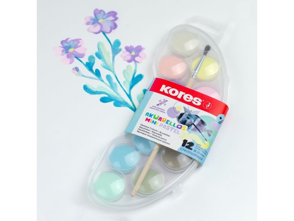 Kores Akuarellos Pastel, vodové barvy 12 barev, průměr 25 mm