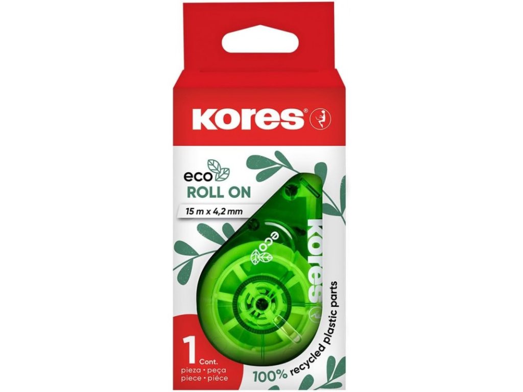 Kores ECO Roll on korekční strojek jednorázový, šíře 4,2 mm, zelený