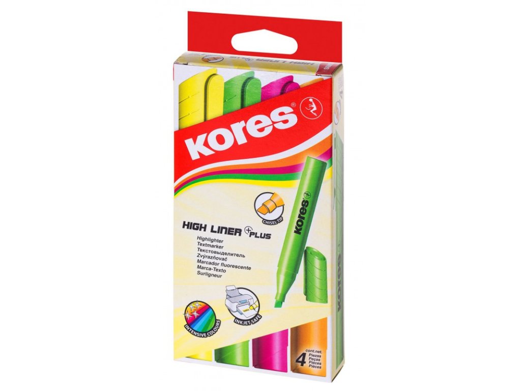 Kores High Liner plus, sada zvýrazňovačů mix 4 barev