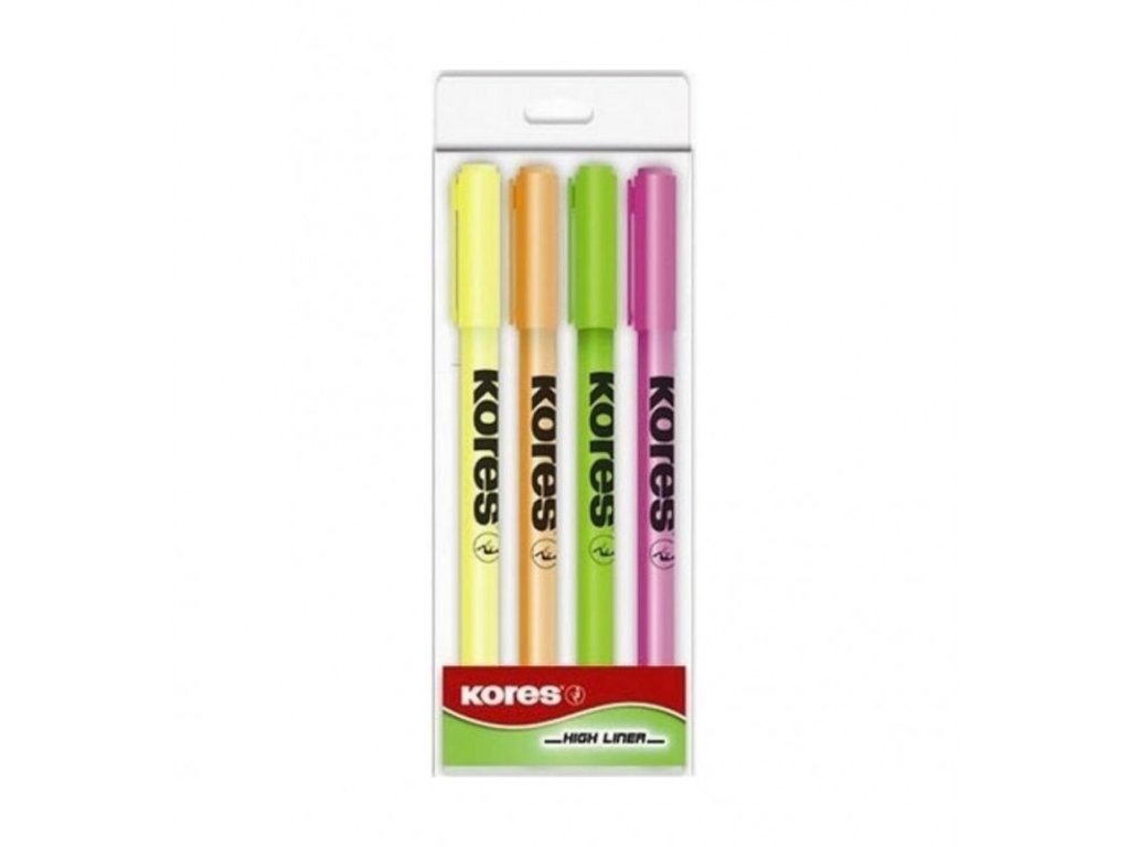 Kores High Liner , sada tenkých zvýrazňovačů mix 4 barev