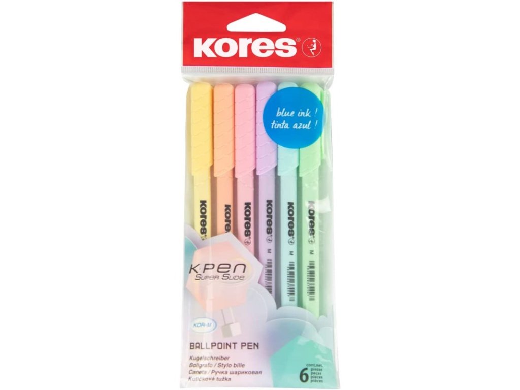 Kores kuličkové pero Kores Pen Super Slide 1 mm - sada 6 pastelových barev