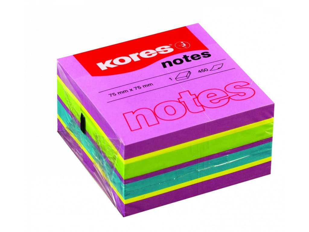 Kores lepící neonové bločky Cubo Spring 75x75 mm, 450 lístků
