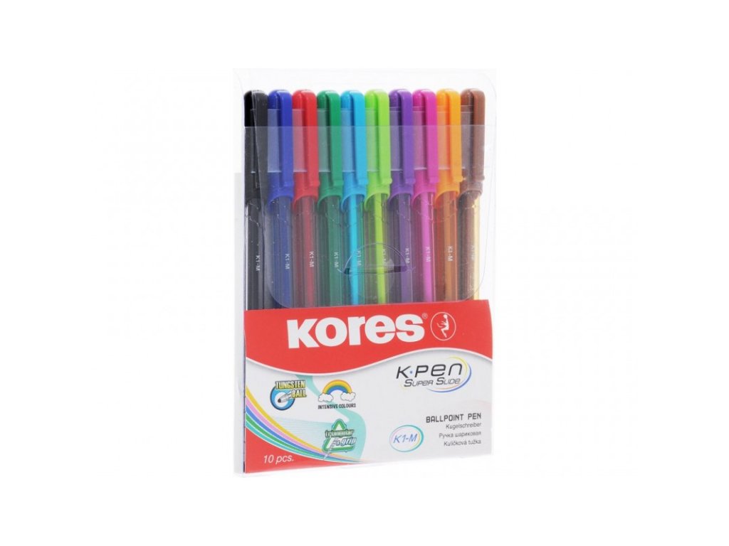 Kores pero kuličkové K1 trojhranné 0,7 mm, sada 10 barev